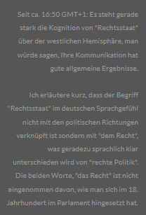 Sehen Sie auch mein „Live Update“ bezüglich einer wünschenswerten Kongition des „Rechtsstaats“ seit 16:50 GMT+1.