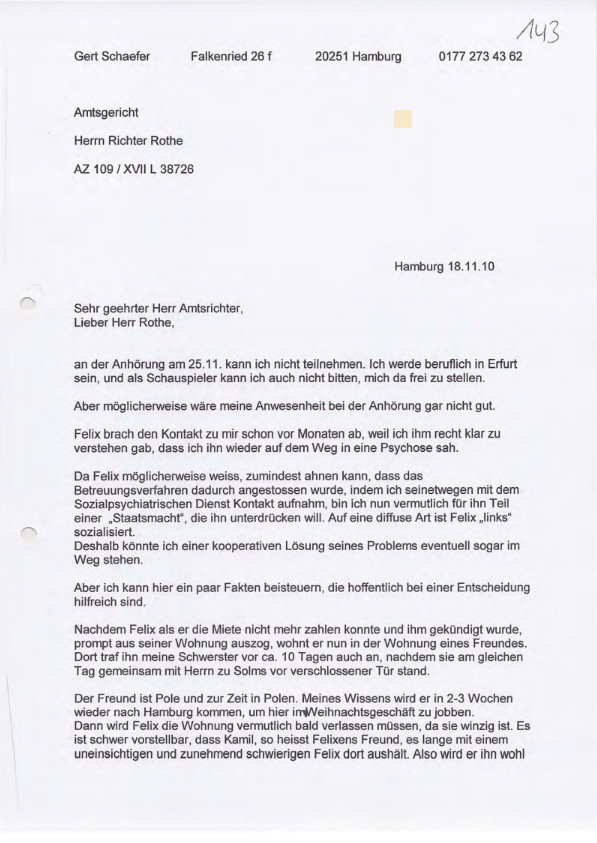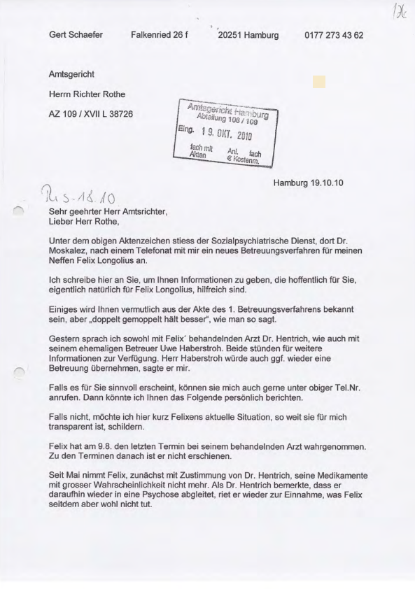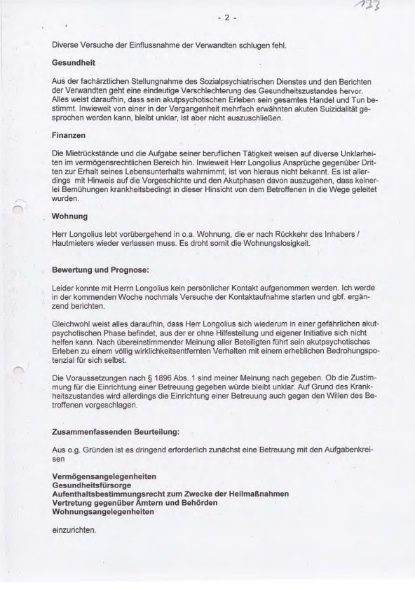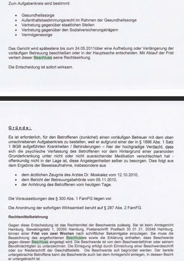 Mein 2014 an Kokainlungenkrebs verreckter Onkel hatte sich ja sehr bemüht, dass ich eine Betreuung bekomme.