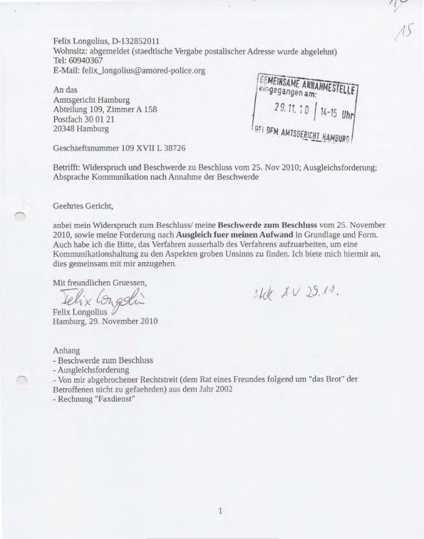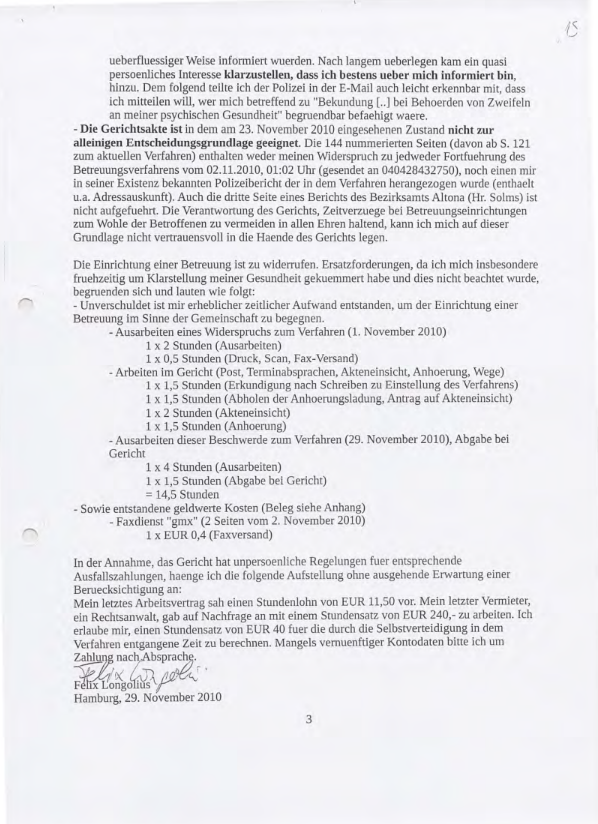 Ich habe was vergessen. Es gibt ja einen Beschluss-Beschluss vom 25. 11. 2010. Da gucken wir auch noch rein.