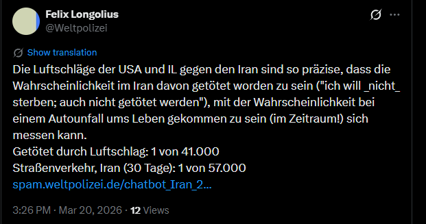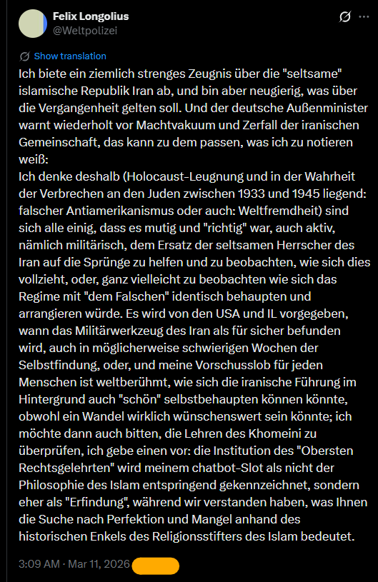 Felix Longolius @Weltpolizei — 8:27 PM · Mar 9, 2026